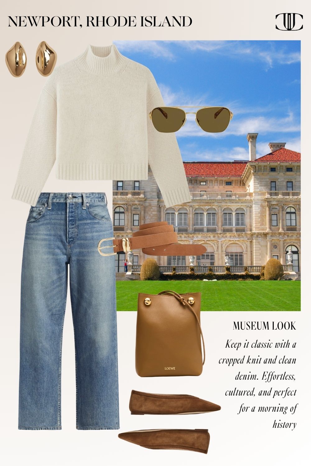 Several of you suggested the Sailing Museum or Marble House — perfect for a crisp fall morning. A cropped knit sweater, tailored denim, and loafers strike the balance between easy and elegant.