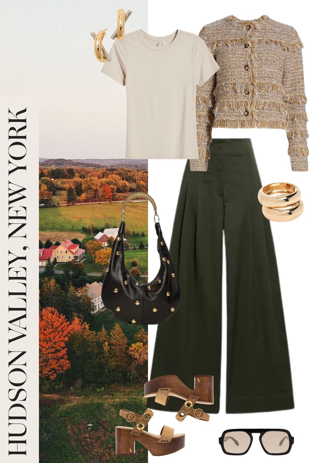 This guide brings you head-to-toe looks designed to take you seamlessly from vineyard tours to farm-to-table dinners, from leaf-strewn strolls to Michelin-starred meals. Think elevated neutrals, luxe textures, and accessories that travel beautifully—all styled to complement the rich colors and refined backdrops of fall’s most breathtaking destinations.