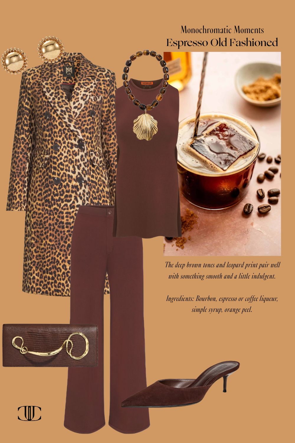 The espresso old fashioned look embraces deep brown tones with a mix of rich textures and classic silhouettes. This monochromatic brown outfit feels warm, confident, and endlessly chic. Shades of espresso, chocolate, and caramel work together to create a look that feels luxurious yet wearable, perfect for dinners, events, or everyday styling with a refined edge.