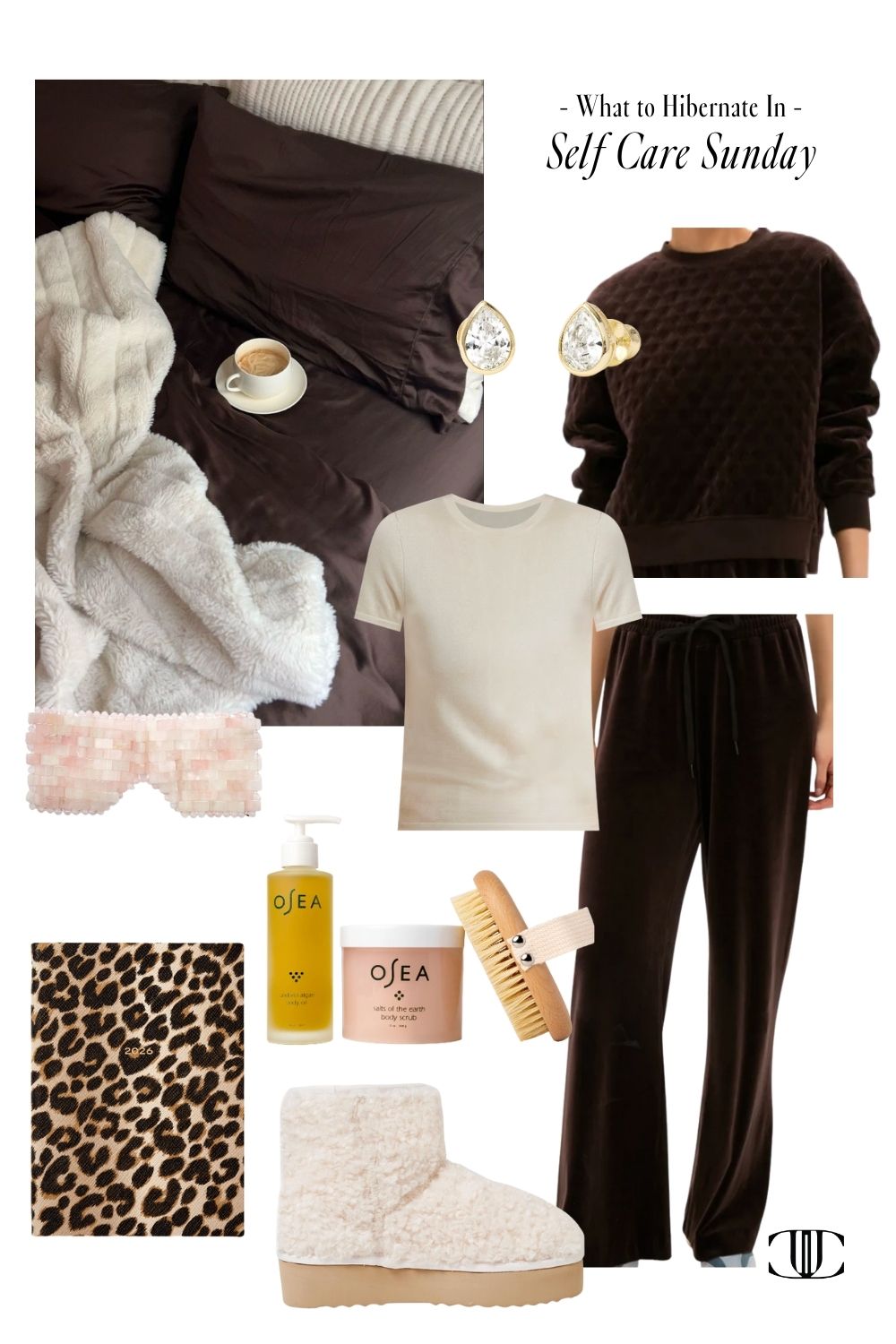 In this post, we’re sharing seven head-to-toe winter hibernation outfits designed for your coziest nights at home. Each look is paired with thoughtful finishing touches—luxurious beauty favorites, warming blankets, and softly scented candles—to complete the ultimate cozy atmosphere. Consider this your guide to embracing winter at home, beautifully.