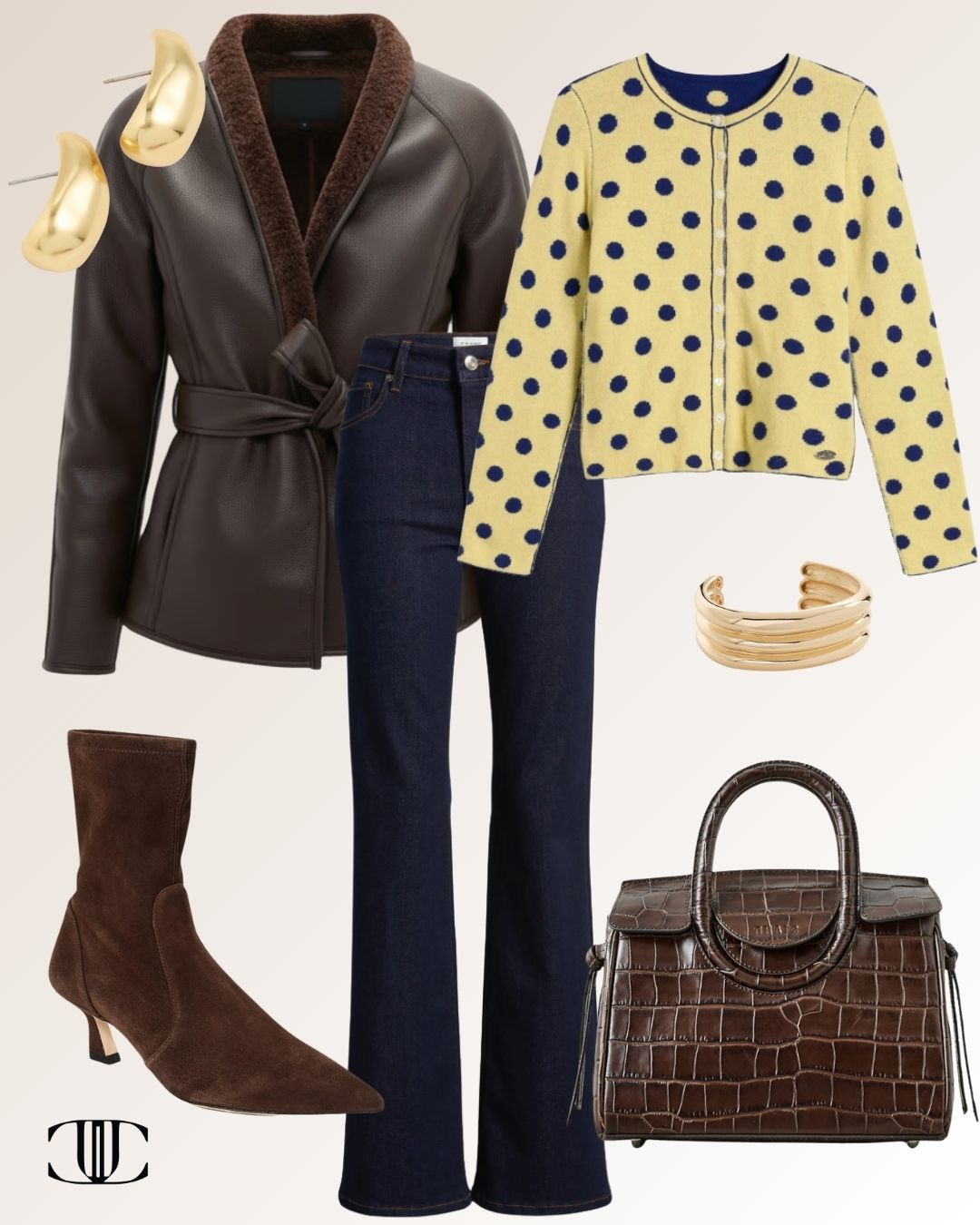Coat, Top, Bottom, Shoes, Bag, Earrings, Cuff