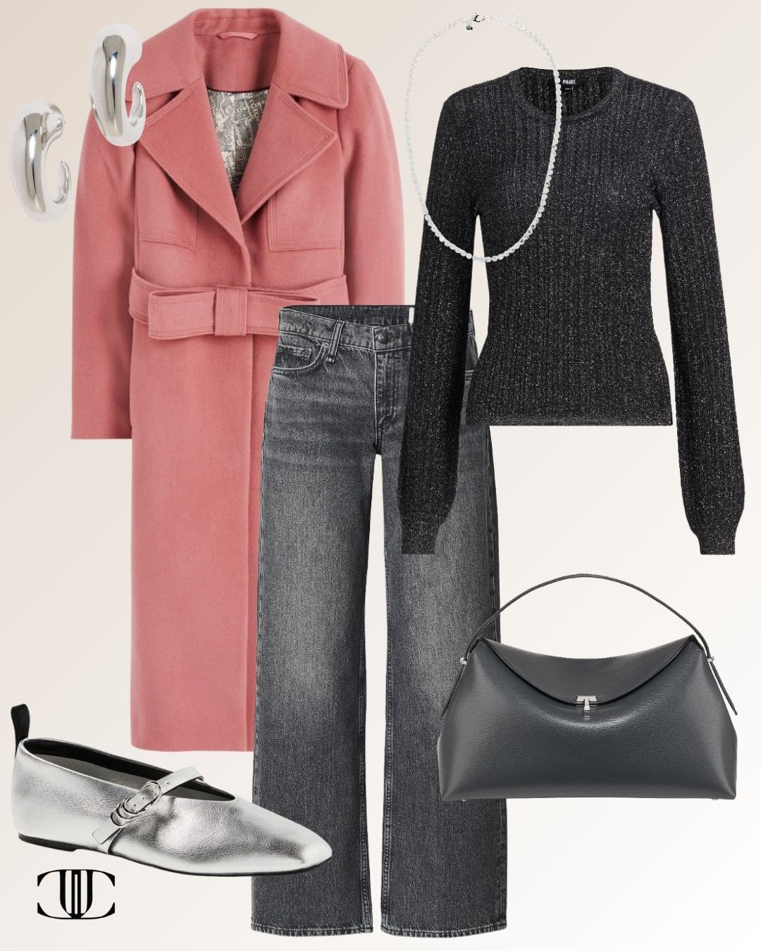 Coat, Top, Bottom, Shoes, Bag, Earrings, Necklace