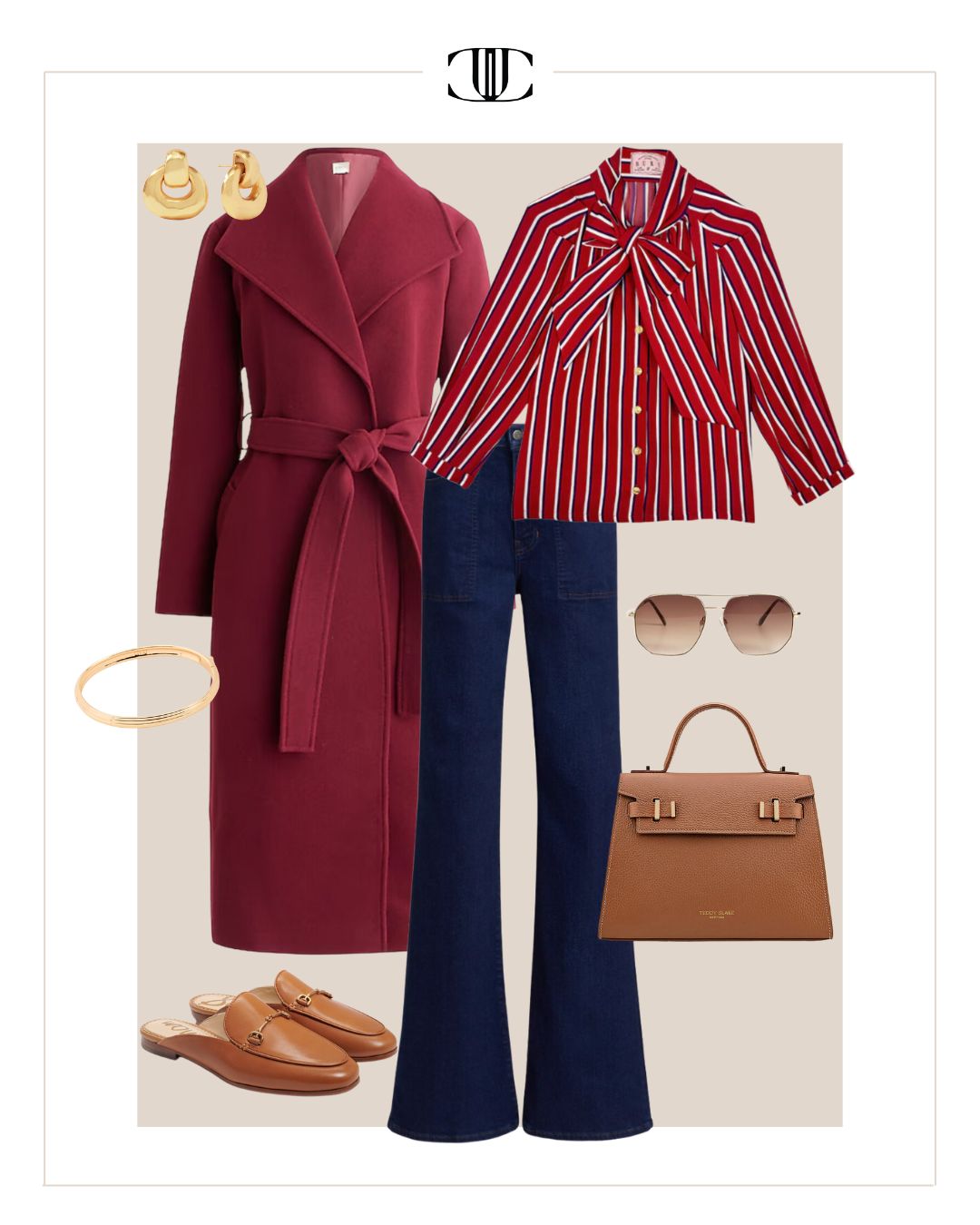 Coat, Top, Bottom, Shoes, Bag, Earrings, Bracelet, Sunglasses