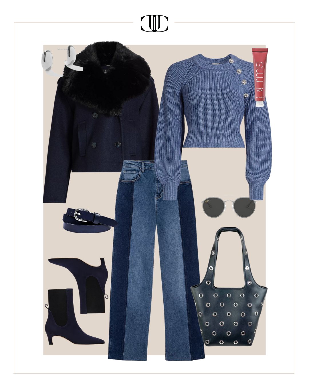 Coat, Sweater, Bottom, Belt, Shoes, Bag, Earrings, Sunglasses, Gloss