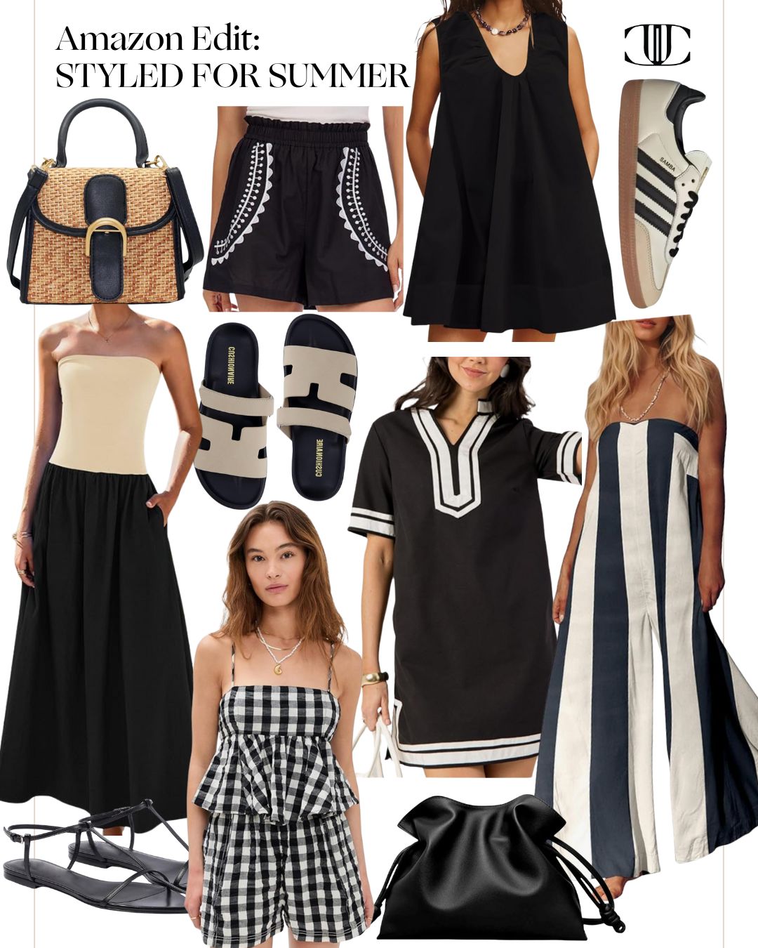Jumpsuit, Strappy Sandals, Shorts, Scoop Neck Dress, Bag, Slides, Short Set, Sneakers, Shirt Dress, Dress, Clutch