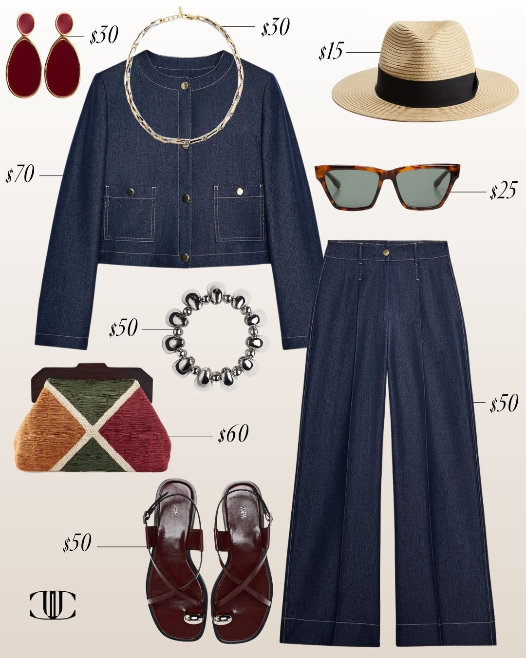 Jacket, Bottom, Shoes, Bag, Earrings, Bracelet, Necklace, Sunglasses, Hat