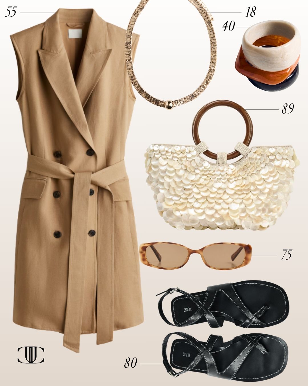 Dress, Shoes, Bag, Necklace, Bracelet, Sunglasses