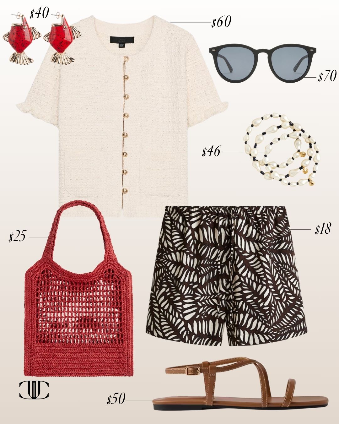 Top, Bottom, Shoes, Bag, Earrings, Bracelet, Sunglasses