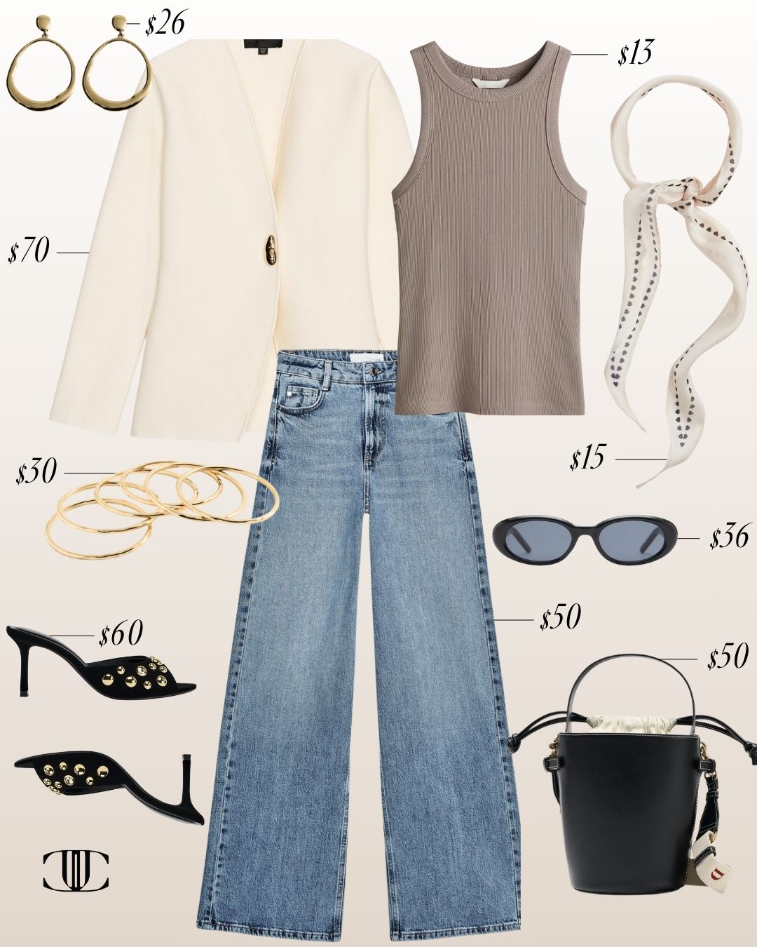 Cardigan, Tank, Bottom, Shoes, Bag, Earrings, Bracelet, Scarf, Sunglasses