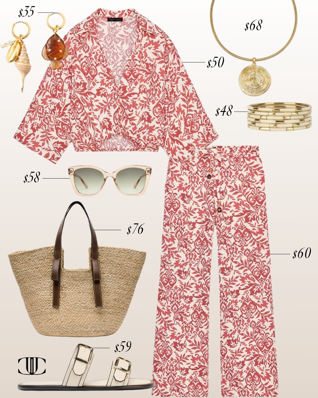 Top, Bottom, Shoes, Bag, Earrings, Necklace, Bracelet, Sunglasses