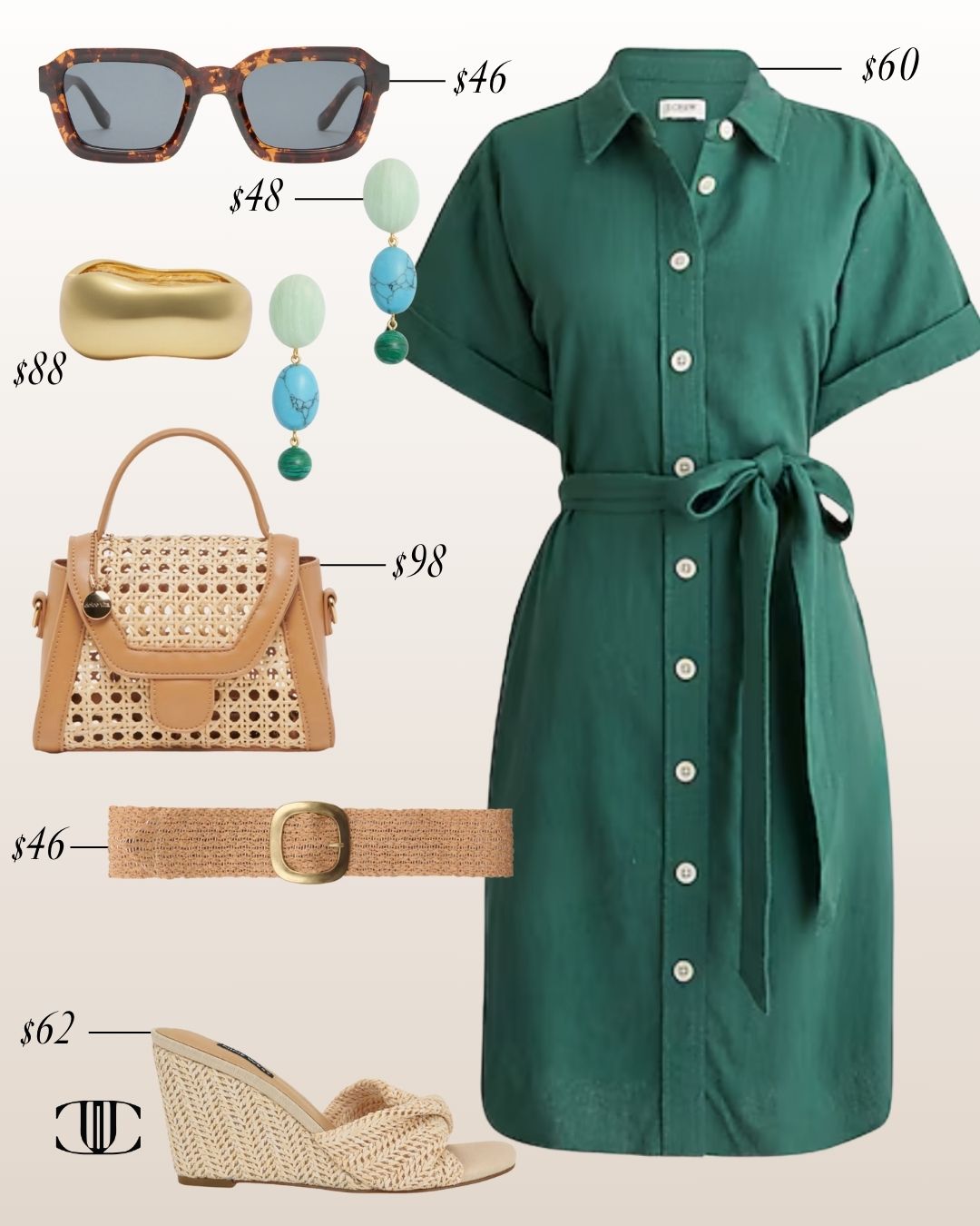 Dress, Belt, Shoes, Bag, Earrings, Bracelet, Sunglasses