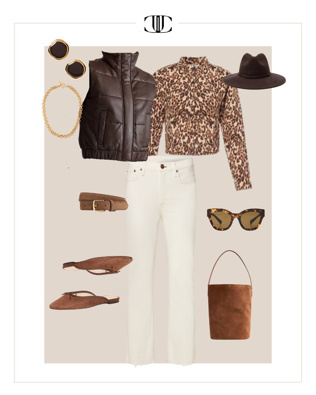 Vest, Top, Bottom, Belt, Shoes, Bag, Earrings, Necklace, Sunglasses, Hat