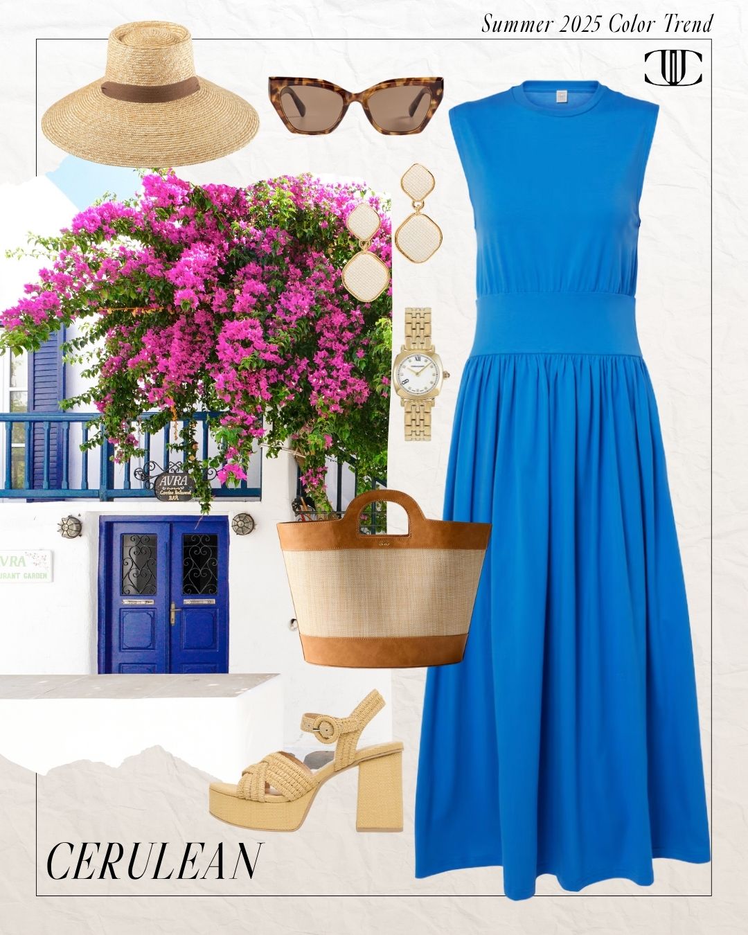 Dress, Shoes, Bag, Earrings, Watch, Sunglasses, Hat