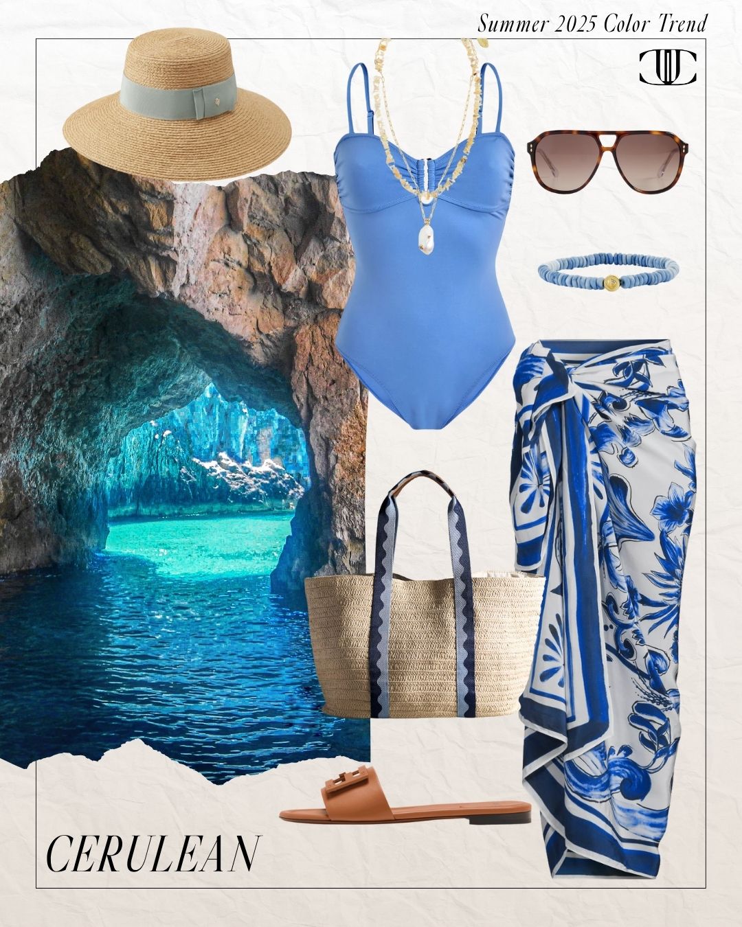 Swimsuit, Sarong, Shoes, Bag, Necklace, Bracelet, Sunglasses, Hat