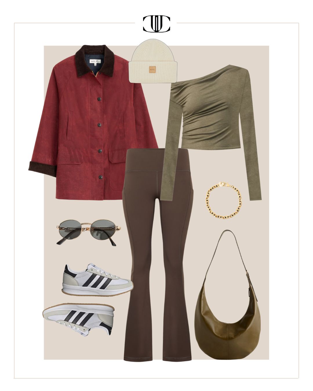 Coat, Top, Bottom, Shoes, Bag, Bracelet, Sunglasses, Hat