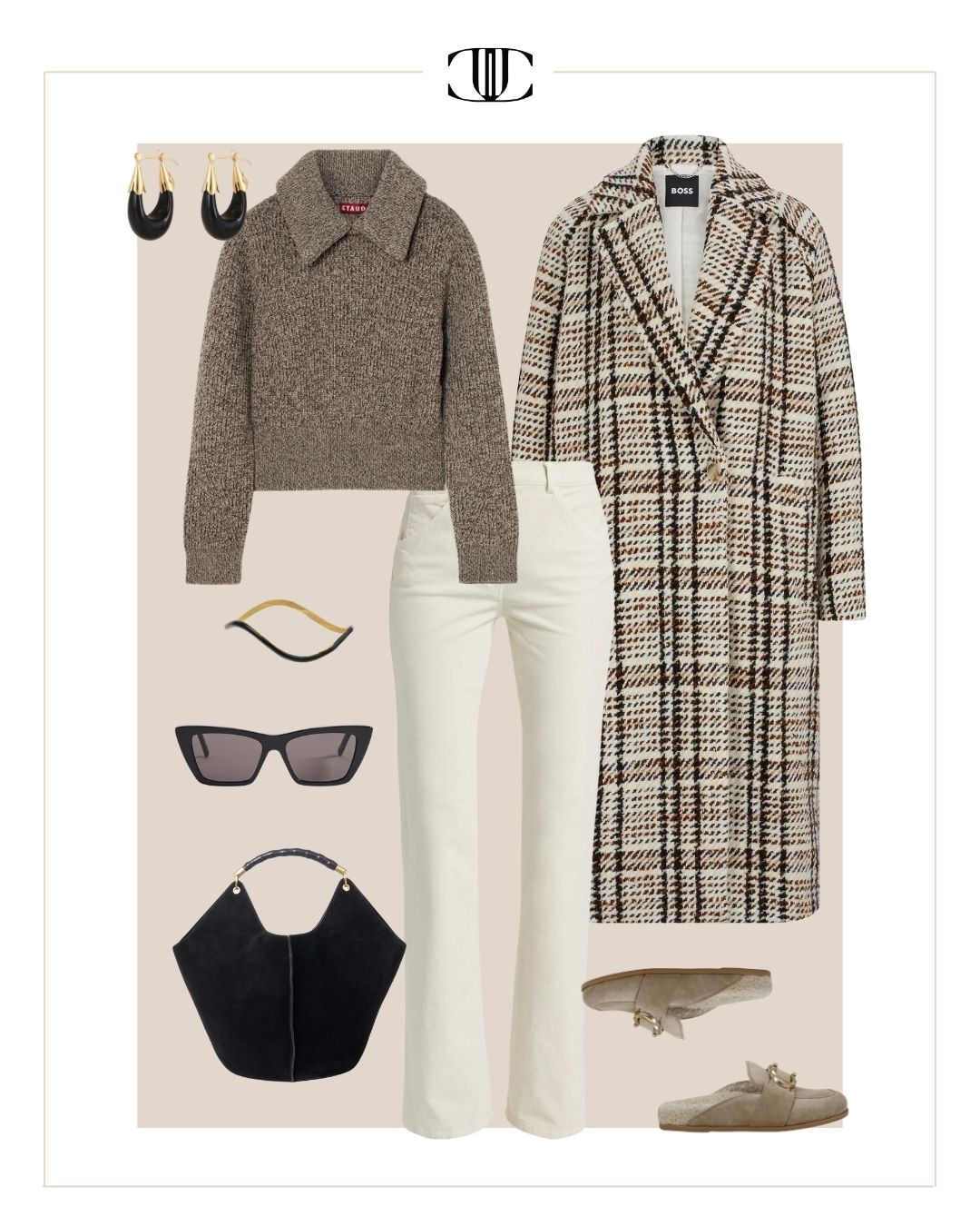 Coat, Top, Bottom, Shoes, Bag, Earrings, Bracelet, Sunglasses