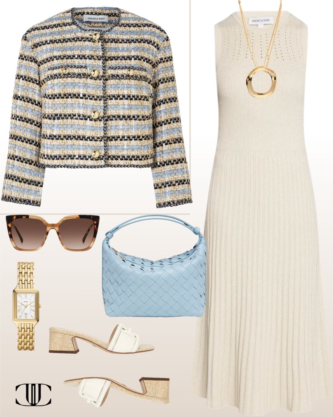 Jacket, Dress, Shoes, Bag, Necklace, Watch, Sunglasses