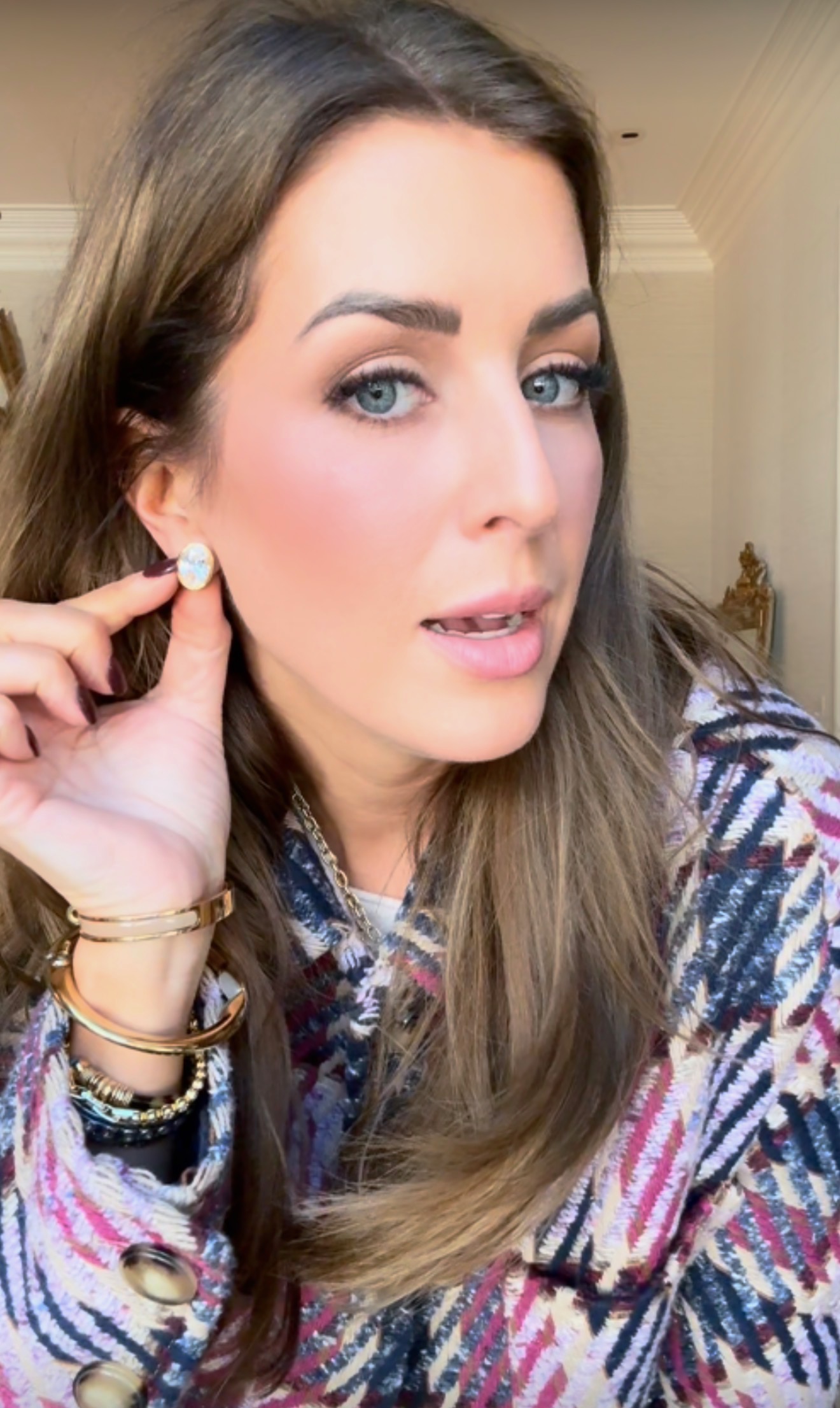 Coat, Top, Bottom, Earrings, Earrings, Necklace