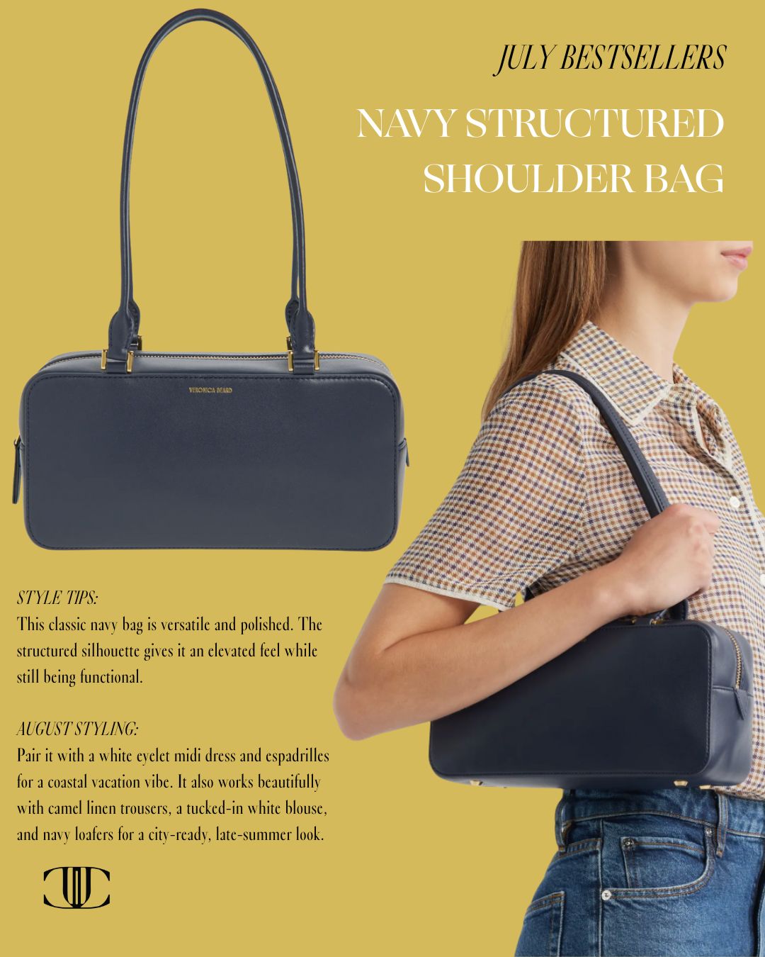 Veronica Beard Boxy Leather Shoulder Bag in Navy