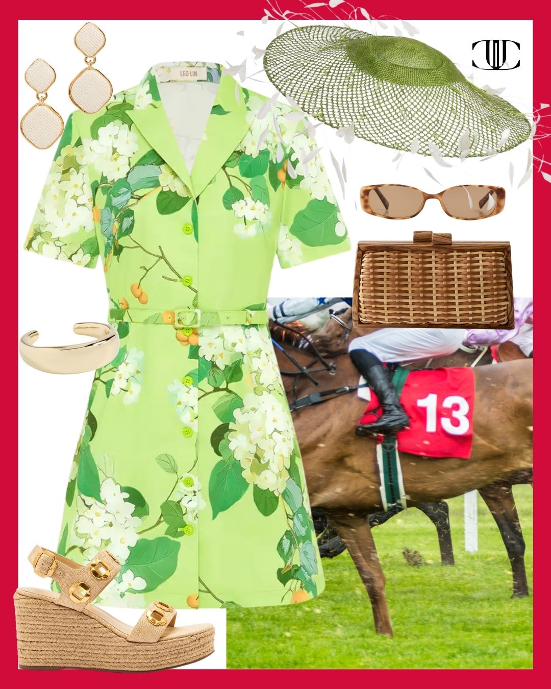Dress, Shoes, Bag, Earrings, Bracelet, Sunglasses, Hat