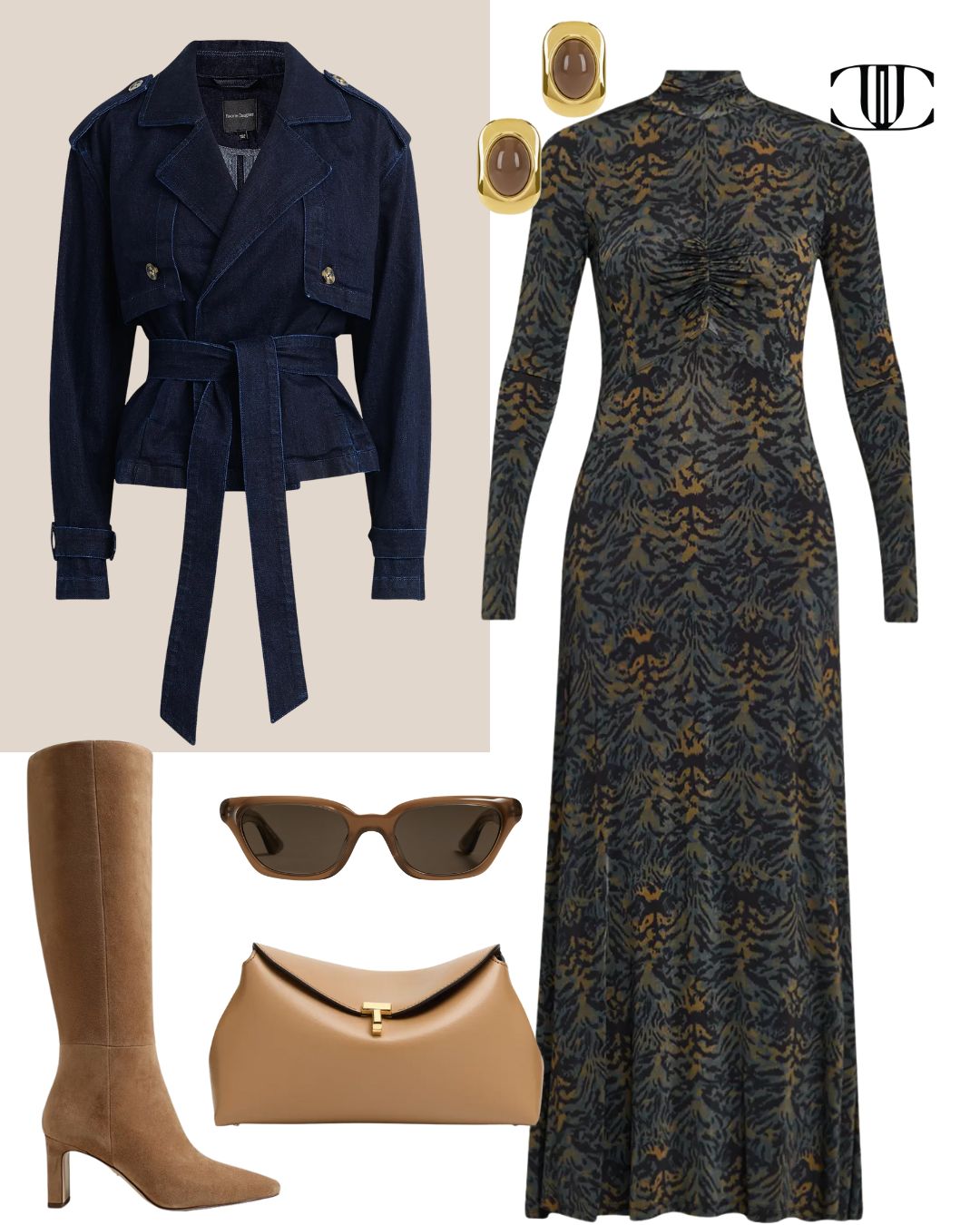 Jacket, Dress, Shoes, Bag, Earrings, Sunglasses