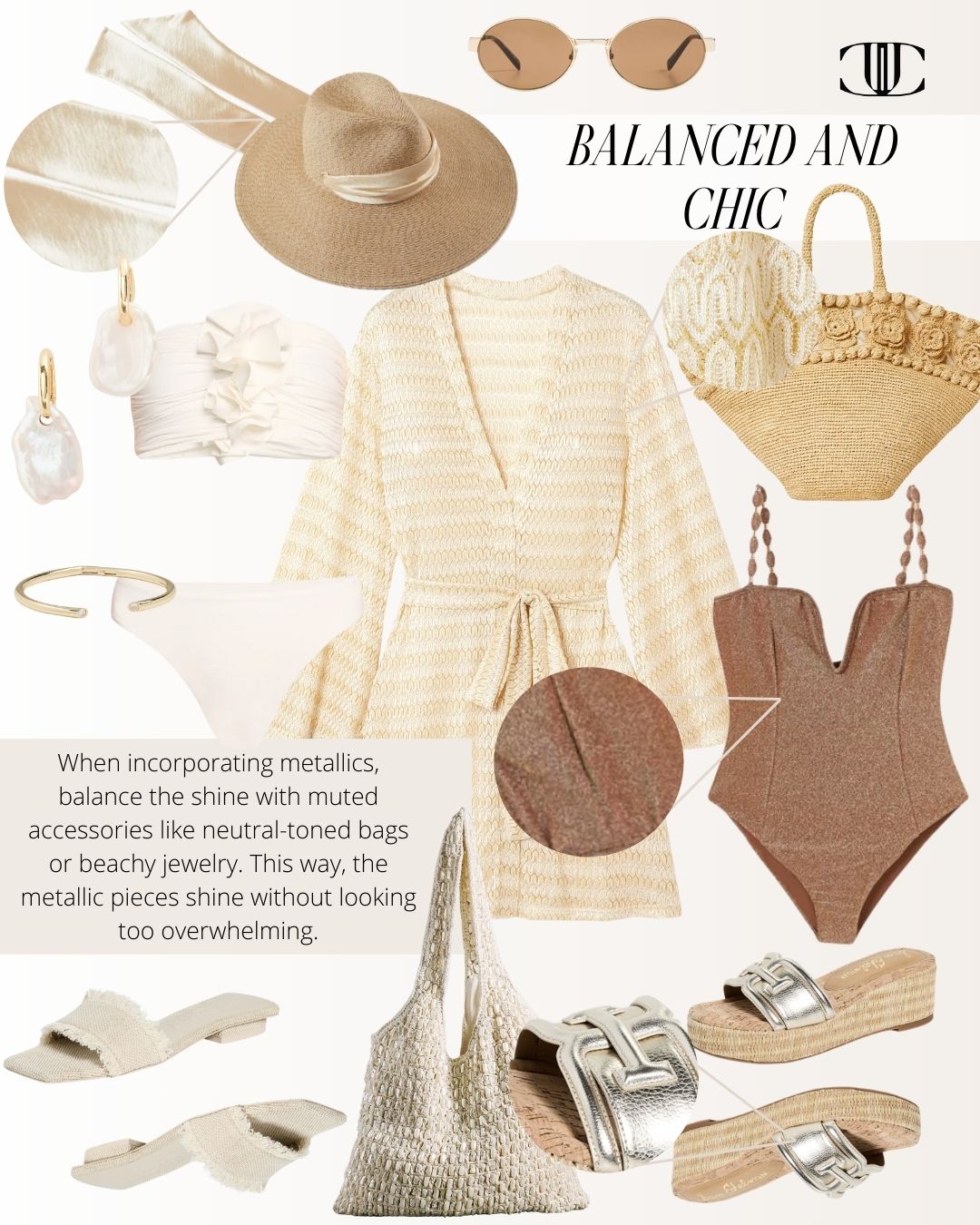 Cover Up, Swimsuit, Swimsuit, Shoes, Shoes, Bag, Bag, Earrings, Bracelet, Sunglasses, Hat