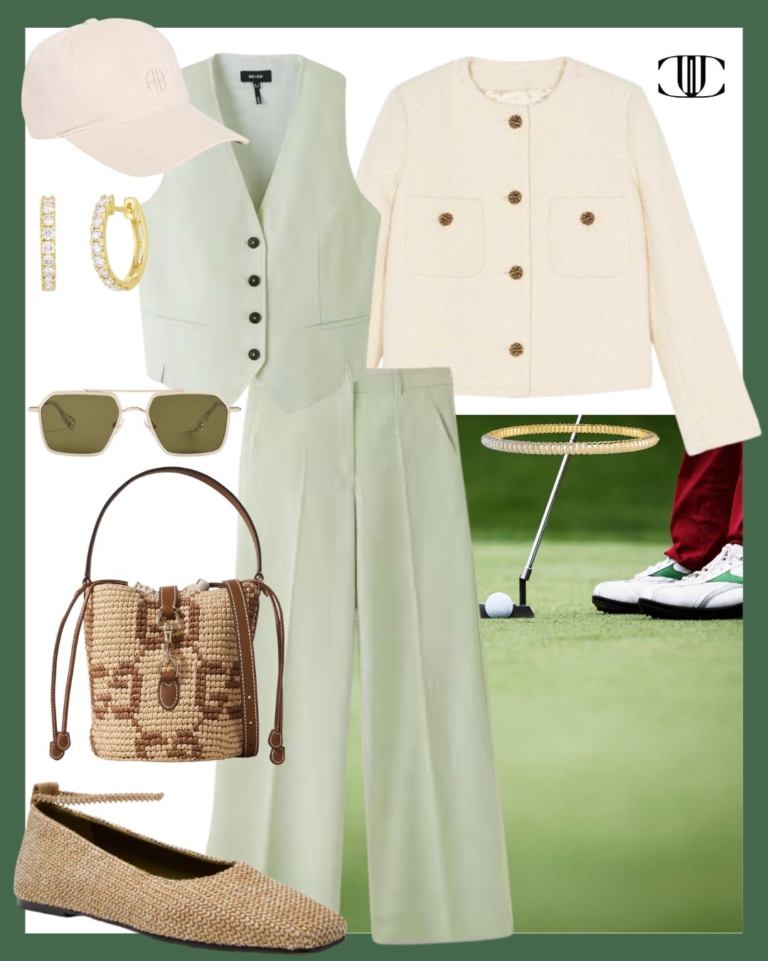 Sweater, Top, Bottom, Shoes, Bag, Earrings, Bracelet, Sunglasses, Hat