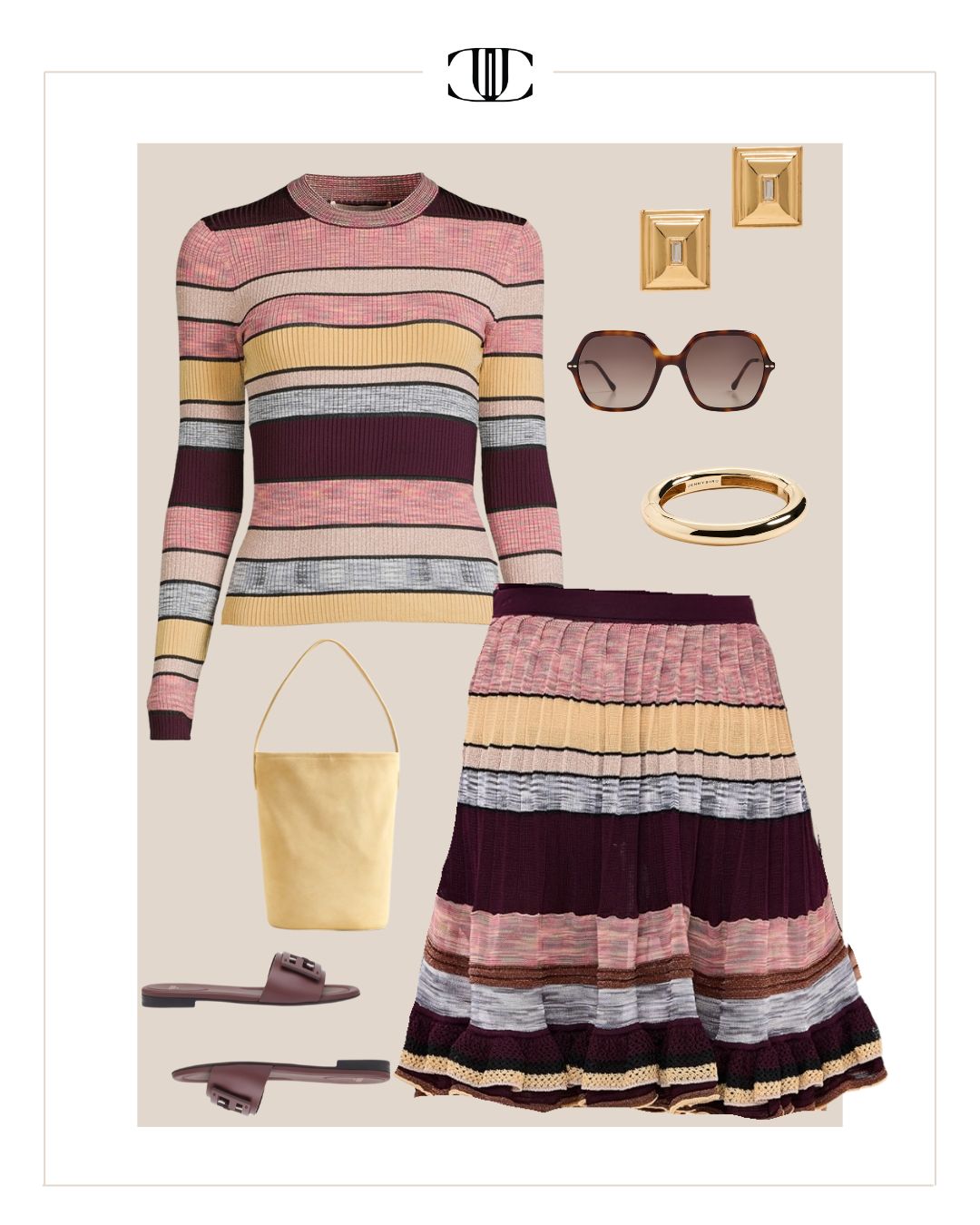 Top, Bottom, Shoes, Bag, Earrings, Bracelet, Sunglasses