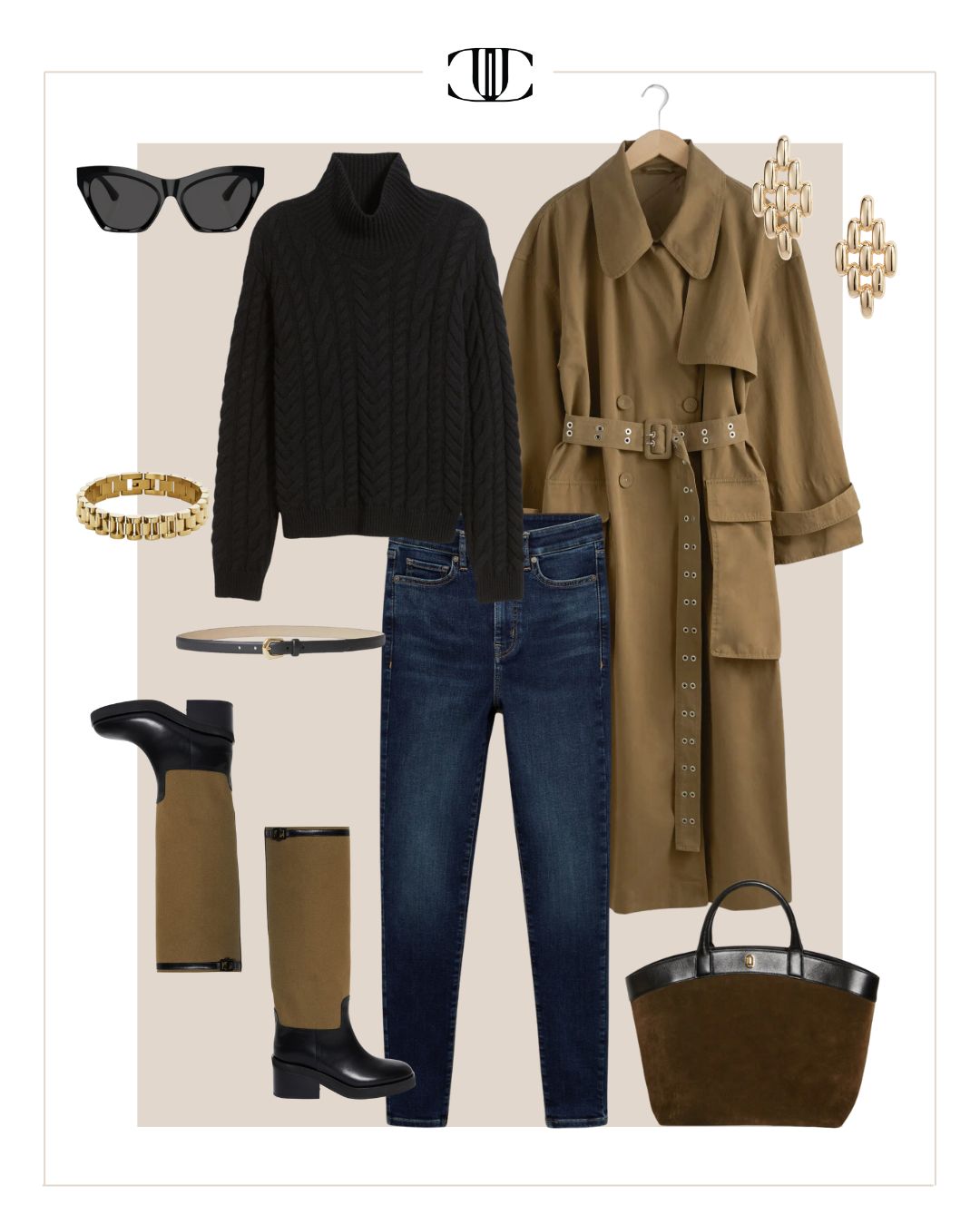 Jacket, Top, Bottom, Belt, Shoe, Bag, Earrings, Bracelet, Sunglasses