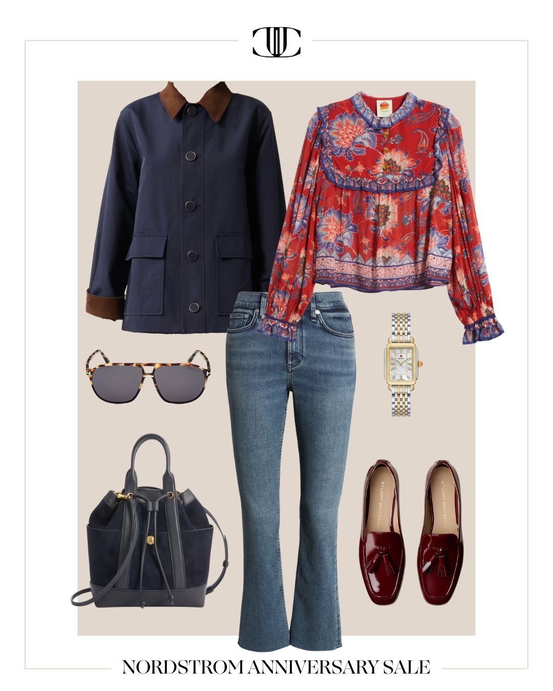 Jacket, Top, Bottom, Shoes, Bag, Watch, Sunglasses