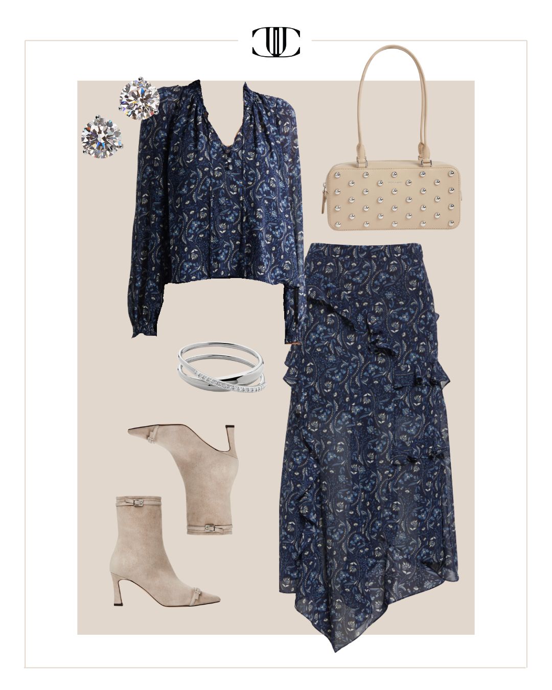 Top, Bottom, Shoes, Bag, Earrings, Ring