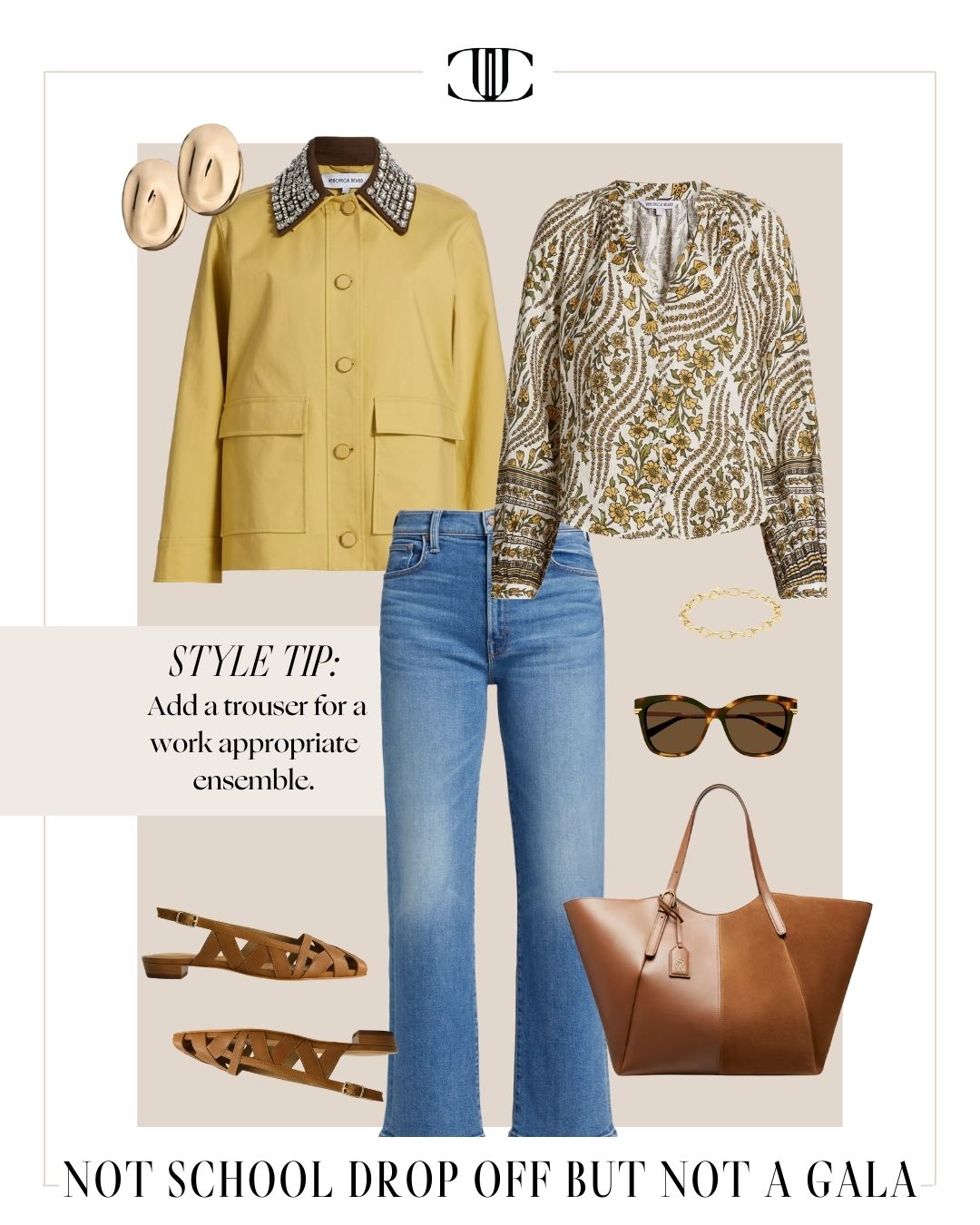 Jacket, Top, Bottom, Shoes, Bag, Earrings, Bracelet, Sunglasses