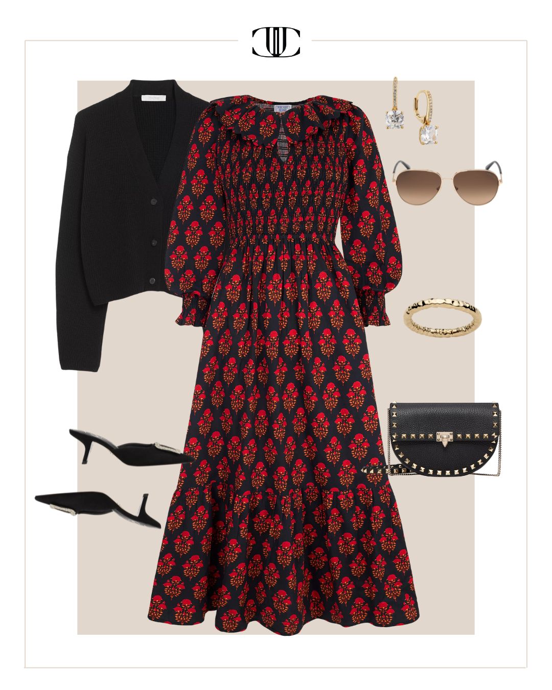 Sweater, Dress, Shoes, Bag, Earrings, Bracelet, Sunglasses