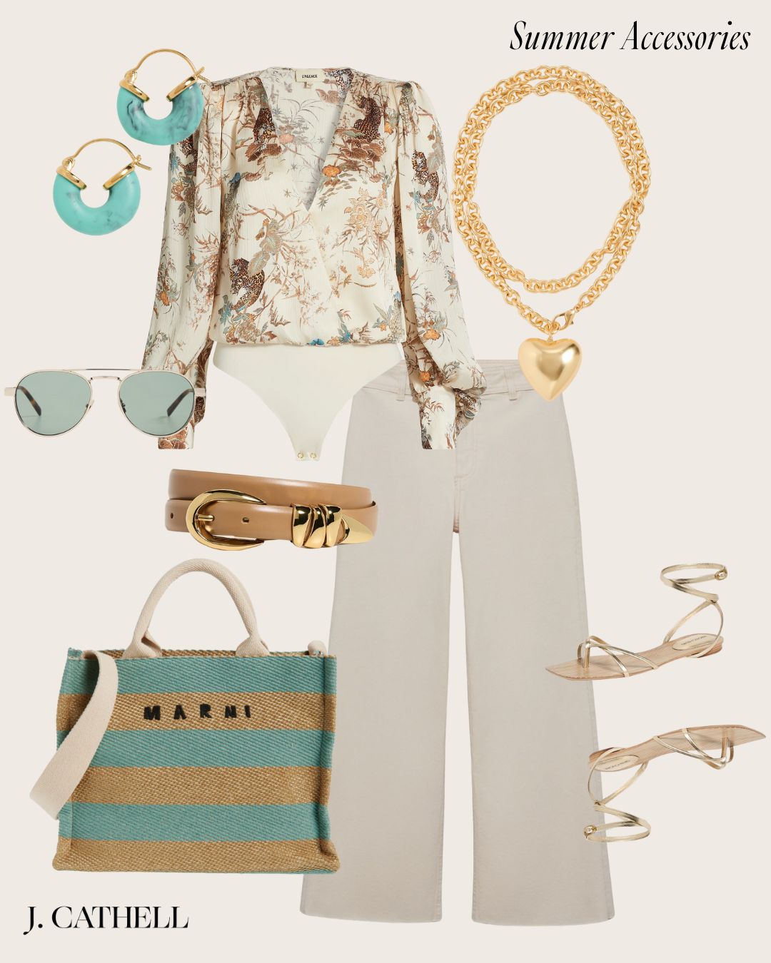 Top, Bottom, Belt, Shoes, Bag, Earrings, Necklace, Sunglasses