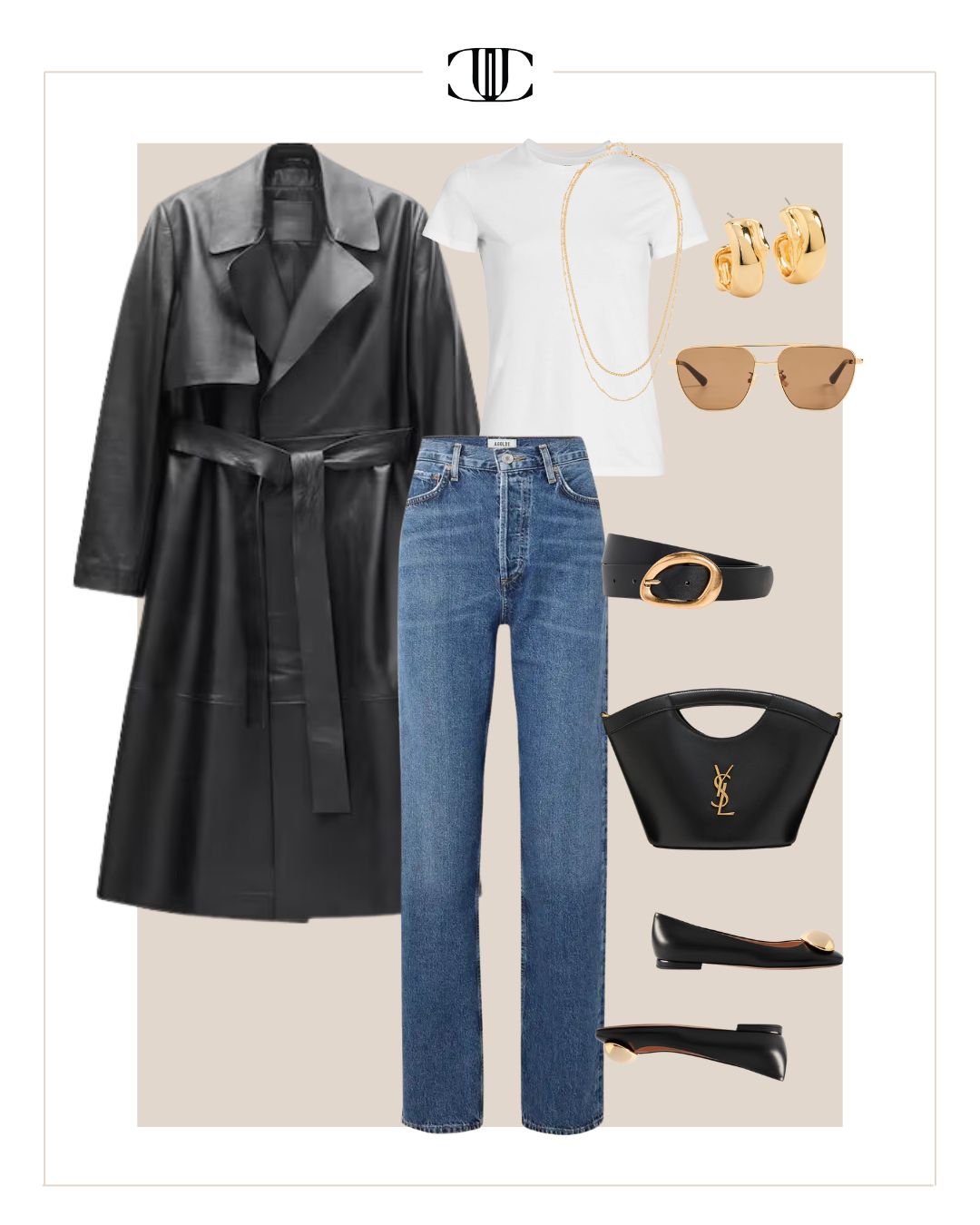 Jacket, Top, Bottom, Belt, Shoes, Bag, Earrings, Necklace, Sunglasses