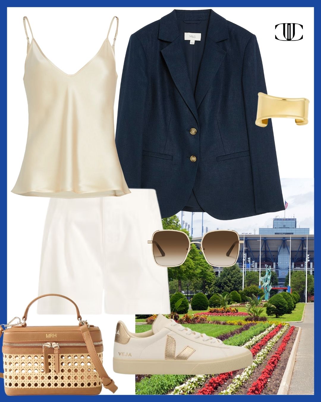 Blazer, Top, Bottom, Shoes, Bag, Bracelet, Sunglasses