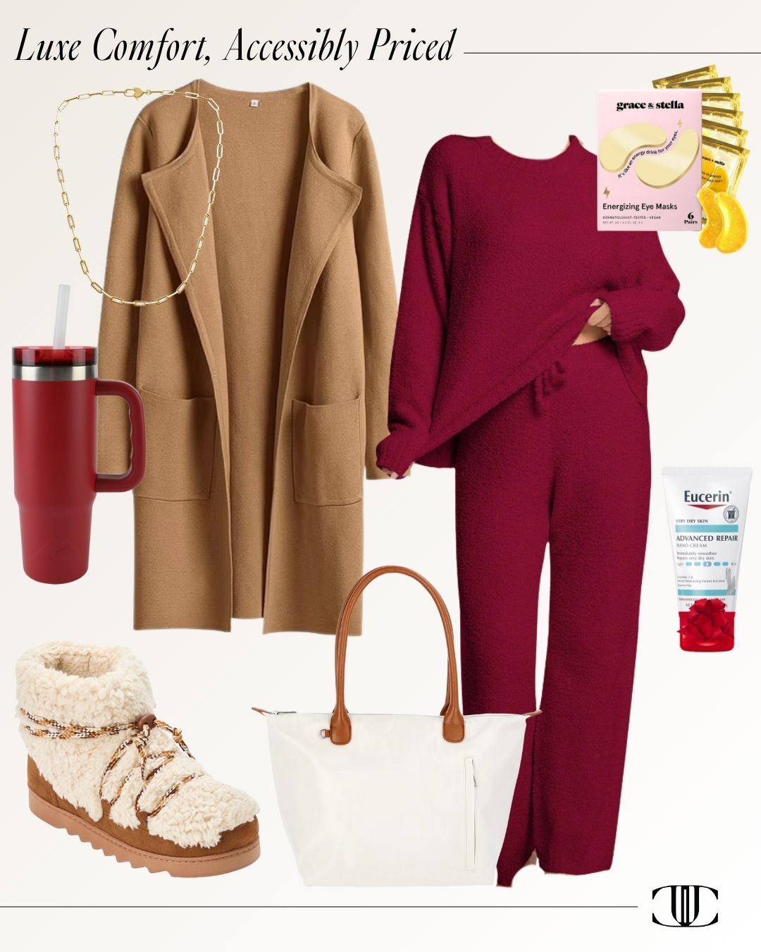 Cardigan, Matching Set, Slippers, Bag, Necklace, Water Bottle, Eye Masks, Hand Cream