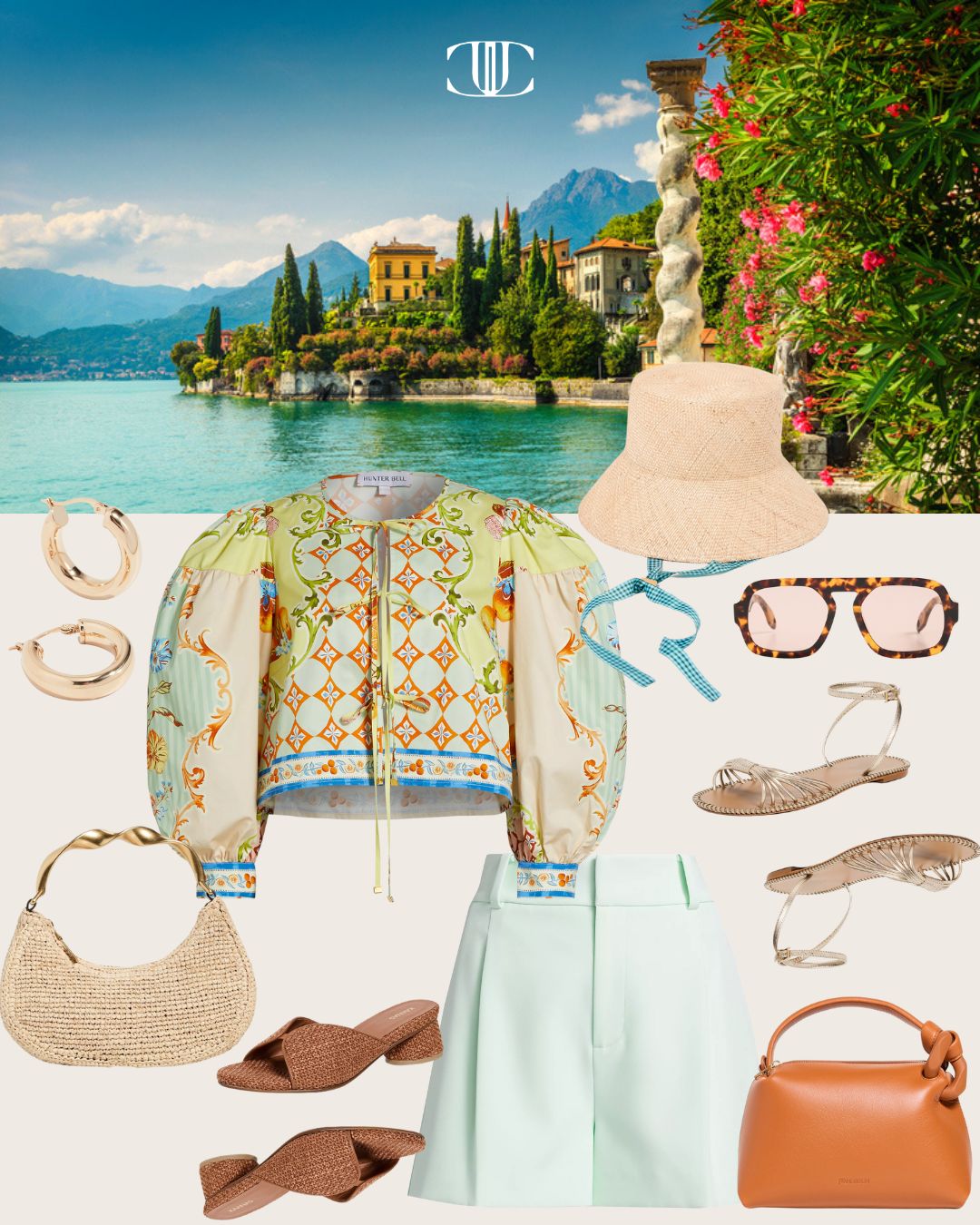 Top, Bottom, Shoes, Shoes, Bag, Bag, Earrings, Sunglasses, Hat