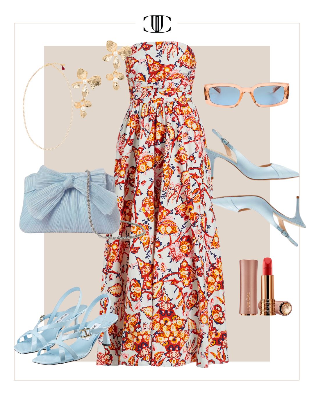 Dress, Shoe 1, Shoe 2, Bag, Earrings, Necklace, Sunglasses, Lip