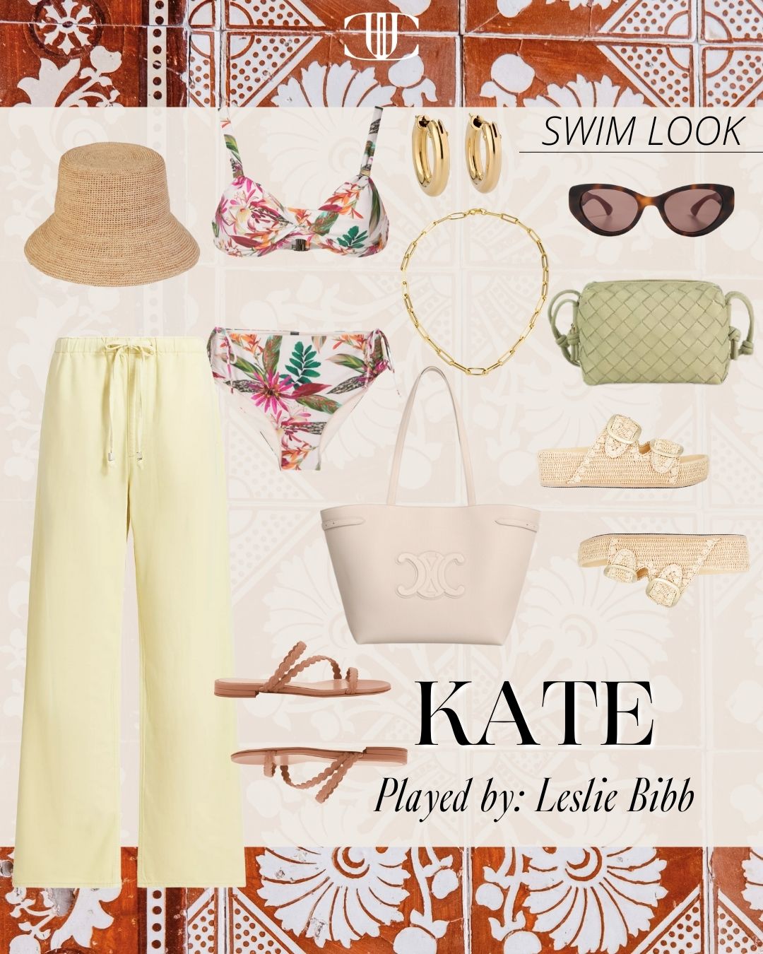 Swimsuit, Beach Pants, Shoes, Shoes, Bag, Bag, Necklace, Earrings, Sunglasses, Hat